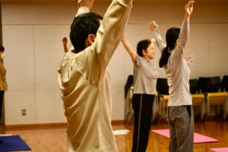 10月23日の講座では、「肩こり予防の運動」をテーマにした90分のプログラムが行われました。講座では、肩関節の可動域チェックの方法や肩こり予防の運動の他にも、参加者からリクエストのあったラジオ体操や体幹トレーニング、空間認知機能を高めるゲームなども行われました。