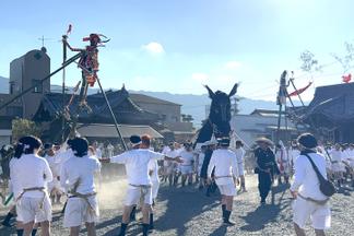 この祭りは、3年に一度、11月中旬に開催され、五穀豊穣を願う「虫追い」本来の目的に加え、高さ約3メートルの武将人形と大馬が激しくぶつかり合戦を演じる、全国的にも珍しい唯一無二の勇壮な「喧嘩祭り」です。